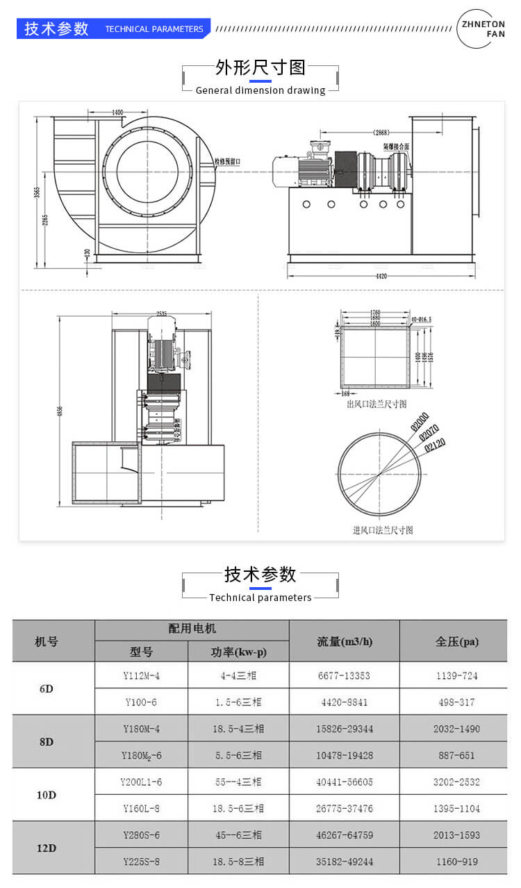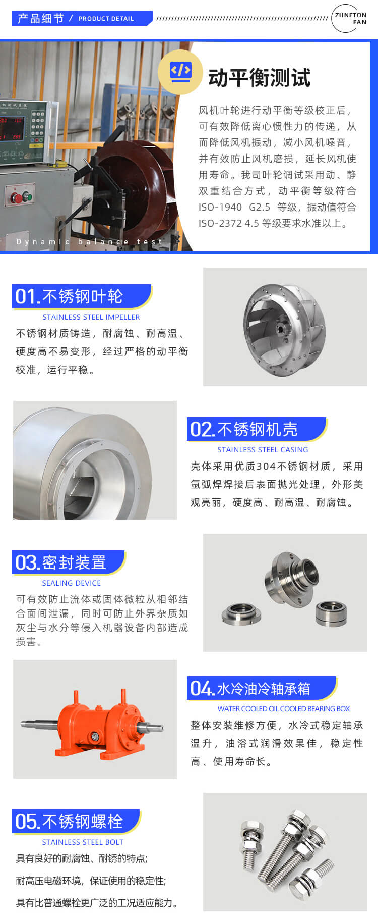 耐高溫、耐銹蝕,具有良好的氣動性,運轉(zhuǎn)平穩(wěn)、振動小、效率高、使用壽命長。