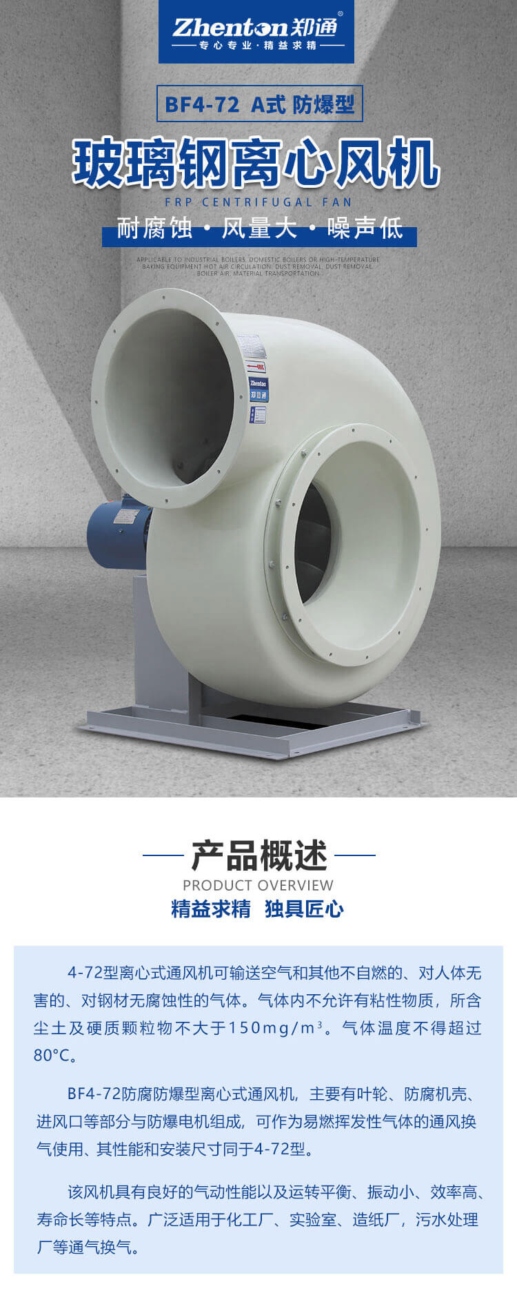 BF4-72防腐防爆型離心式通風(fēng)機(jī),主要有葉輪、防腐機(jī)殼、進(jìn)風(fēng)口等部分與防爆電機(jī)組成,可作為易燃揮發(fā)性氣體的通風(fēng)換氣使用、其性能和安裝尺寸同于4-72型。