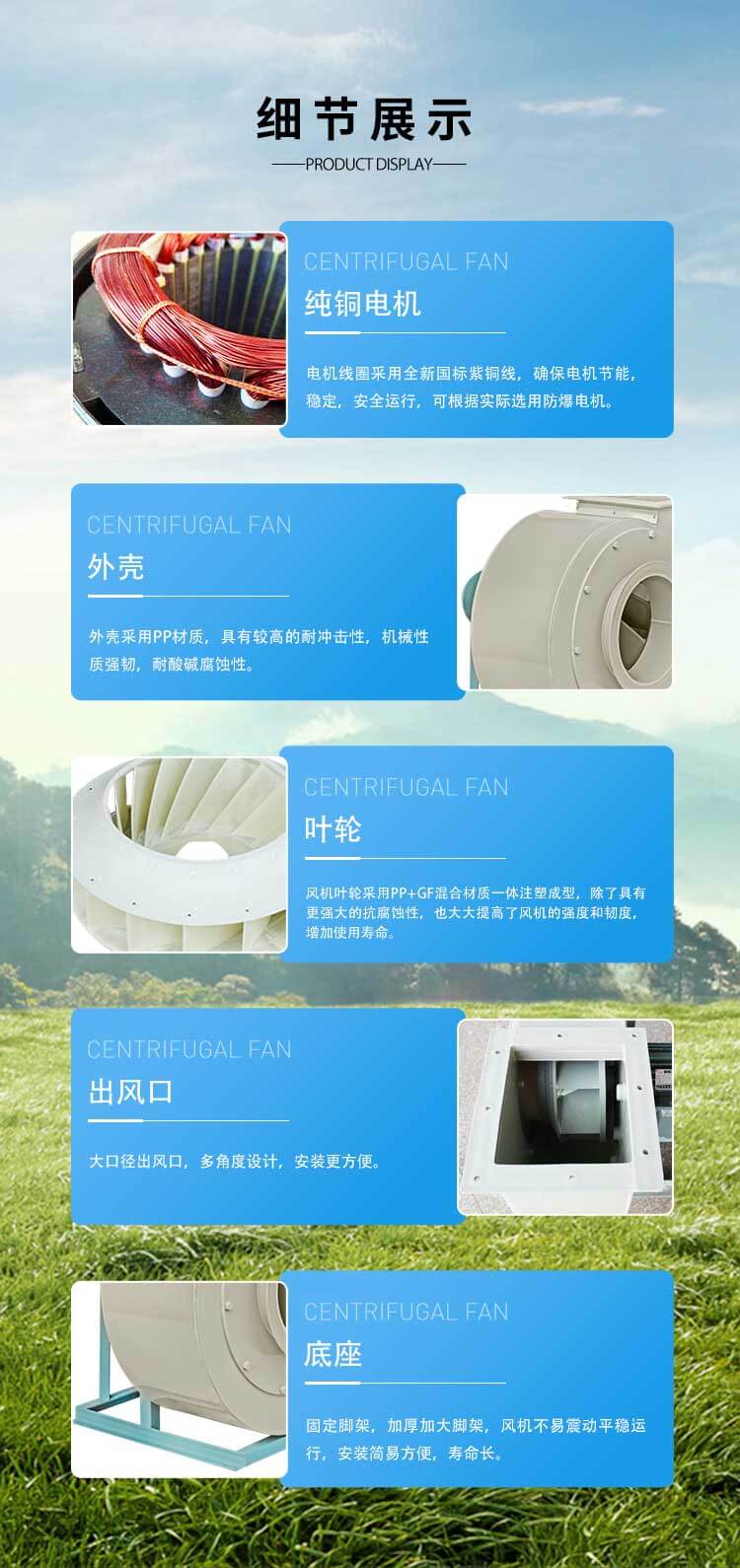 適用于化工、紡織、電鍍、實(shí)驗(yàn)室等場(chǎng)所排送含有一定濃度的酸、堿、鹽等腐蝕性氣體,也可以作為一般工廠的建筑物通風(fēng)換氣用