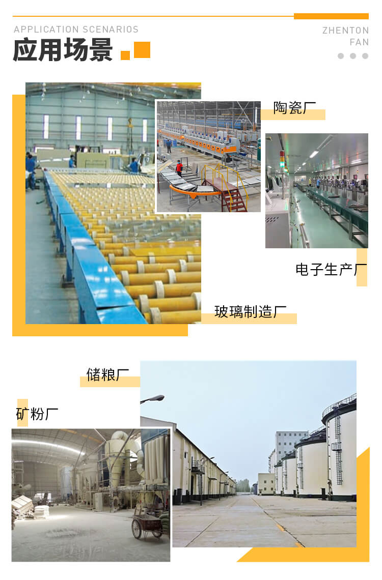 一般適用于鍛冶廠、、玻璃廠、, 陶瓷廠、無線電廠等高壓強制通風(fēng)及糧食廠、飼料廠、礦粉廠、沙場等加工行業(yè)的物料輸送。