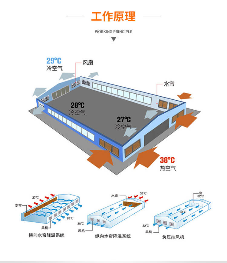 玻璃鋼負(fù)壓風(fēng)機(jī),外殼采用玻璃鋼纖維模壓成型,外形為喇叭形狀(所以有人稱之為喇叭形玻璃鋼負(fù)壓風(fēng)機(jī))。負(fù)壓風(fēng)機(jī)一般安裝于墻體、窗戶、或鋼結(jié)構(gòu)棚體,假設(shè)安裝的位置屬于整個(gè)空間的東面,那么在對應(yīng)的西面會有相應(yīng)的進(jìn)氣孔洞,當(dāng)防腐蝕玻璃鋼負(fù)壓風(fēng)機(jī)開啟后,室內(nèi)的悶熱空氣會抽走,從而西面室外的新鮮空氣會主動進(jìn)入室內(nèi),形成空氣流通。 在空氣流通過程中,悶熱、異味的空氣都會置換成新鮮的空氣,從而起到通風(fēng)降溫的效果。