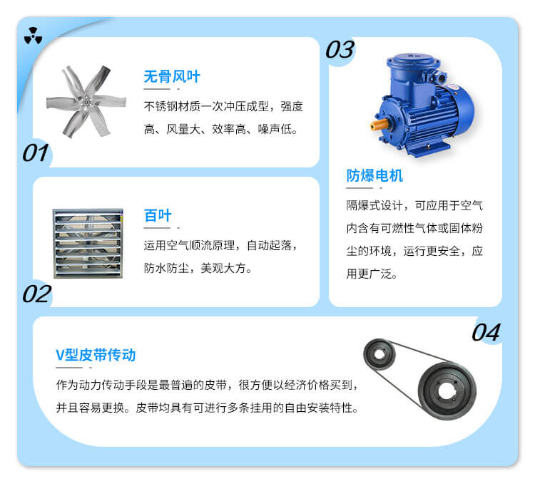 適用于高溫或有異味的車間,勞動密集型企業(yè),園藝溫室大棚、畜牧場、倉儲物流等需要通風(fēng)降溫或一定濕度的領(lǐng)域,如熱處理廠、皮件廠、電鍍廠、印染廠、車間、網(wǎng)吧、棉紡廠、毛紡廠等。
