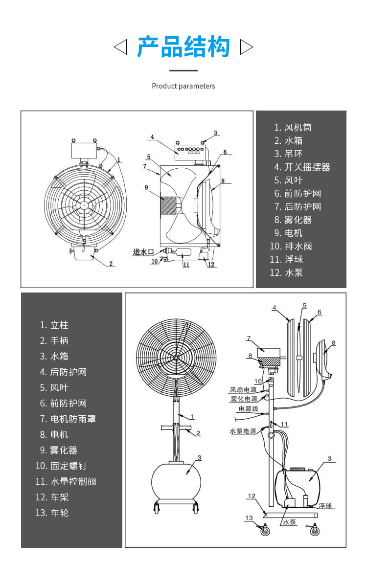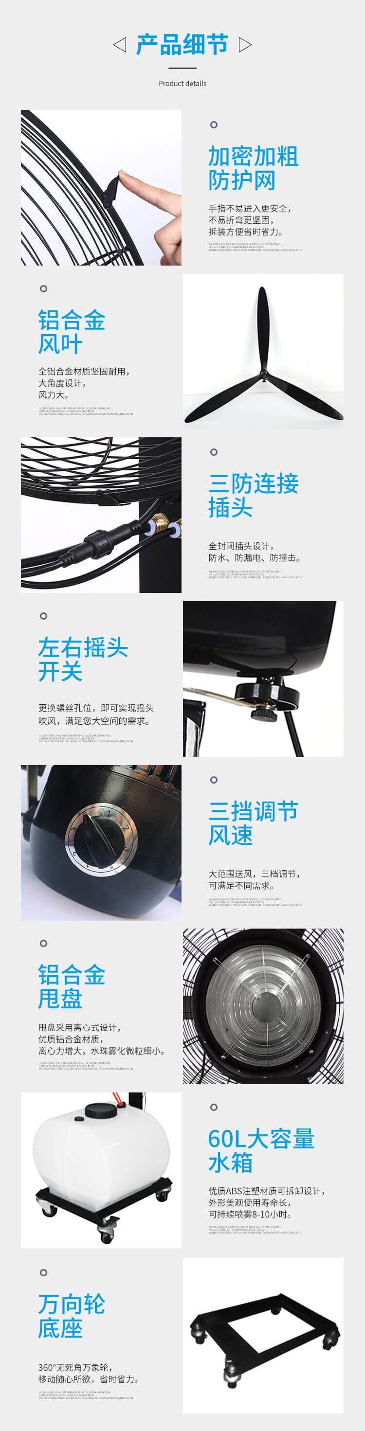 離心式霧化設(shè)計(jì),無(wú)需噴嘴和水過(guò)濾裝置防水電氣設(shè)計(jì),使用安全霧化大小可隨意調(diào)節(jié)、噪音低配有手推車,移動(dòng)便捷。