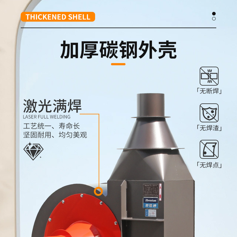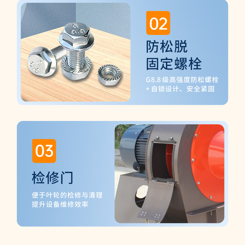 FC6-48物料輸送離心風(fēng)機系列,糧食加工中輸送谷物、面粉,建材行業(yè)輸送水泥粉、石灰粉,化工領(lǐng)域輸送非腐蝕性顆粒原料,以及飼料廠輸送飼料粉、塑料廠輸送塑料顆粒等場景的物料輸送。整體采用加厚碳鋼蝸殼、圓弧形專用葉輪、純銅電機設(shè)計。質(zhì)量可靠,耐磨性能強噴塑烤漆工藝,不掉漆,不生銹,用個十年八年沒問題。