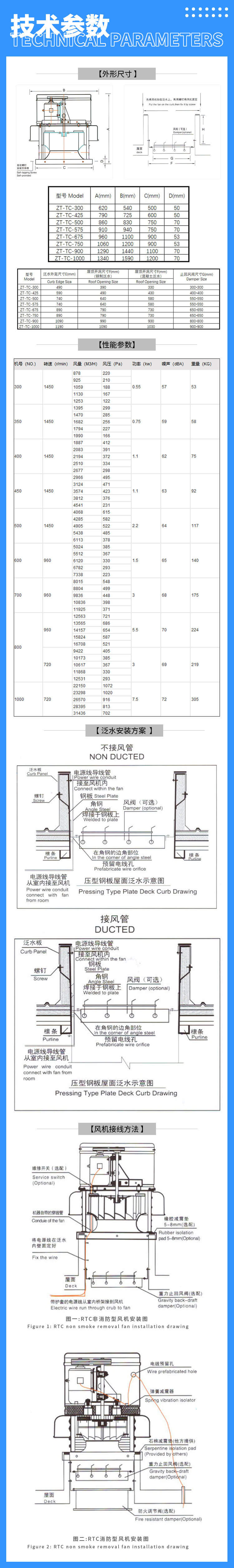 RTC(JRTC)系列屋頂風(fēng)機(jī)根據(jù)不同的使用環(huán)境和輸送介質(zhì),制成常規(guī)型、防腐型、防爆型、防腐防爆型??筛鶕?jù)使用要求制成全鋁質(zhì)消防高溫排煙屋頂風(fēng)機(jī),并配設(shè)入口排煙防火閥。