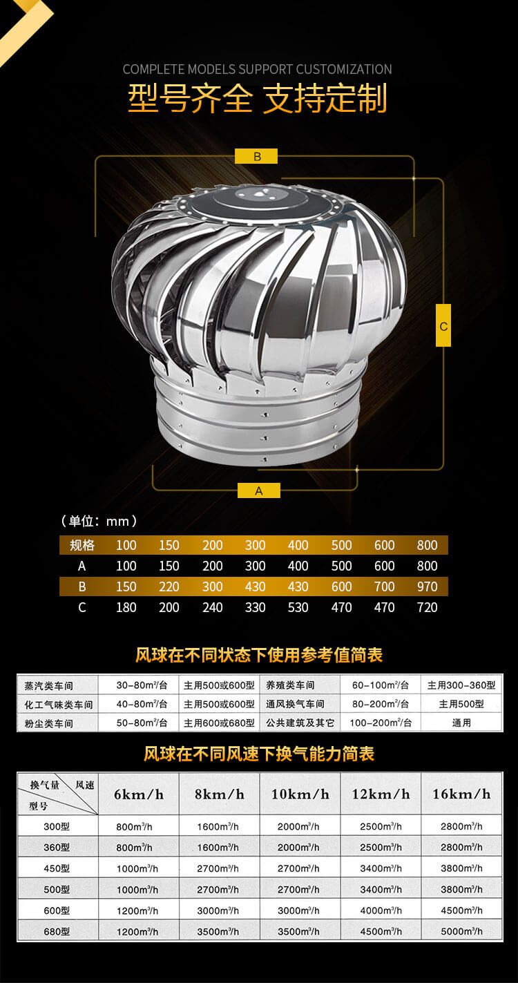 不銹鋼無動(dòng)力風(fēng)球適用于工廠、車間、廚房、餐廳、倉庫、醫(yī)院等的通風(fēng)換氣。