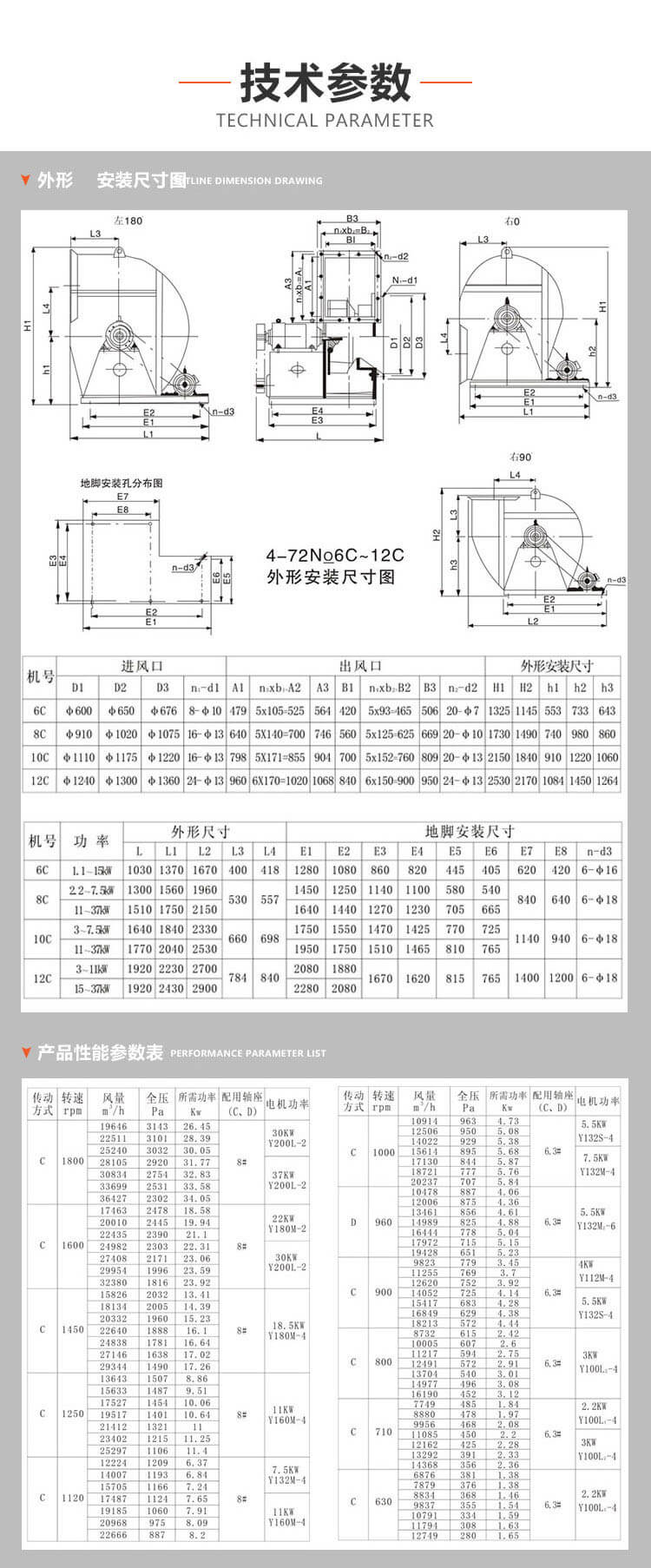 4-72型離心式通風機可輸送空氣和其他不自燃的、對人體無 害的、對鋼材無腐蝕性的氣體。氣體內不允許有粘性物質,所含 塵土及硬質顆粒物不大于150mg/m3。氣體溫度不得超過 80°C。B4-72型防爆型離心式通風機、主要有葉輪、機殼、進風口 等部分與防爆電機組成、可作為易燃揮發(fā)性氣體的通風換氣使用、 其性能和安裝尺寸同于4-72型。